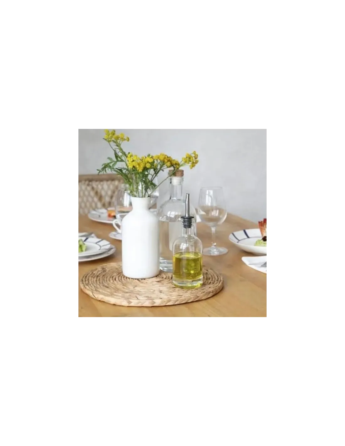 Pro.mundi ofrece una aceitera de vidrio de 22 cl que combina calidad, simplicidad y diseño refinado. Compacta (20,7 cm de alto, 6,5 cm de diámetro), es estable, práctica con su pico vertedor y fácil de mantener (apta para lavavajillas). Ideal para restaurantes y cafeterías, combina elegancia y funcionalidad.