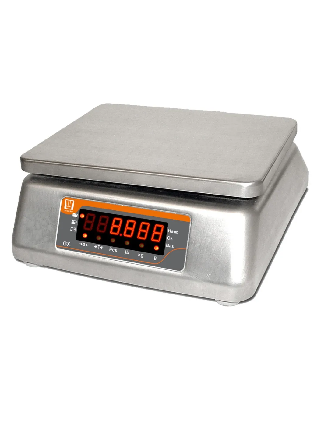 Balanza de laboratorio +/-1.0000 CELSIUS 230v Pro.cooker para un resultado preciso. Plato de acero inoxidable desmontable 225x186mm. Protección todo inox IP65. Uso +5° a +40°C. Doble pantalla frontal/trasera LCD rojo de 18mm. Alimentación integrada, batería integrada, 230v/6VA - 500mA. Batería: Autonomía de 30 a 45h según el tiempo de carga, suministrada con cable de alimentación. Pata regulable para la puesta a nivel. Funciones: pesaje, tara, tecla de puesta a cero.