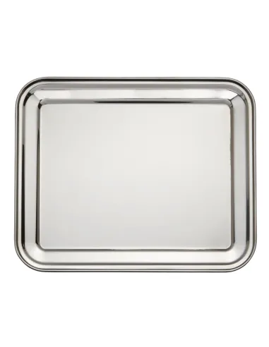 Bandeja de acero inoxidable de 32x26,5 cm con bordes aplanados, diseñada para uso en catering.