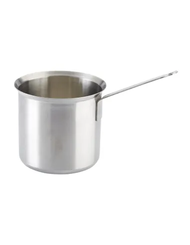 Recipiente de acero inoxidable, alto y estrecho, diseñado para mantener salsas calientes al baño maría. Medidas: Ø 12 cm, capacidad de 1,25 L.