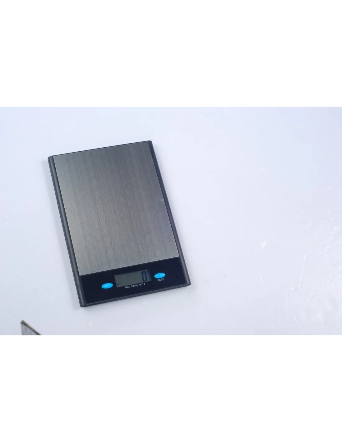 Báscula auxiliar de 5 kg con plataforma de acero inoxidable y sensor de presión preciso. Cuenta con pantalla LED retroiluminada, tara automática, apagado automático, indicador de batería baja y...