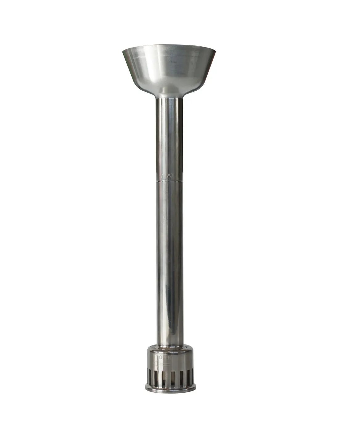 Tubo de inmersión y campana en acero inoxidable para una higiene perfecta y un mantenimiento fácil. Martillo triturador triangular en inox, revestimiento Titanium. Permite triturar, machacar, alisar y mezclar directamente en la Marmita profesional excelentes sopas, cremas, salsas, cremas de frutas, para obtener en solo 3 minutos una textura cremosa, lisa y perfecta. Ya no es necesario pasar la preparación por el Chino.