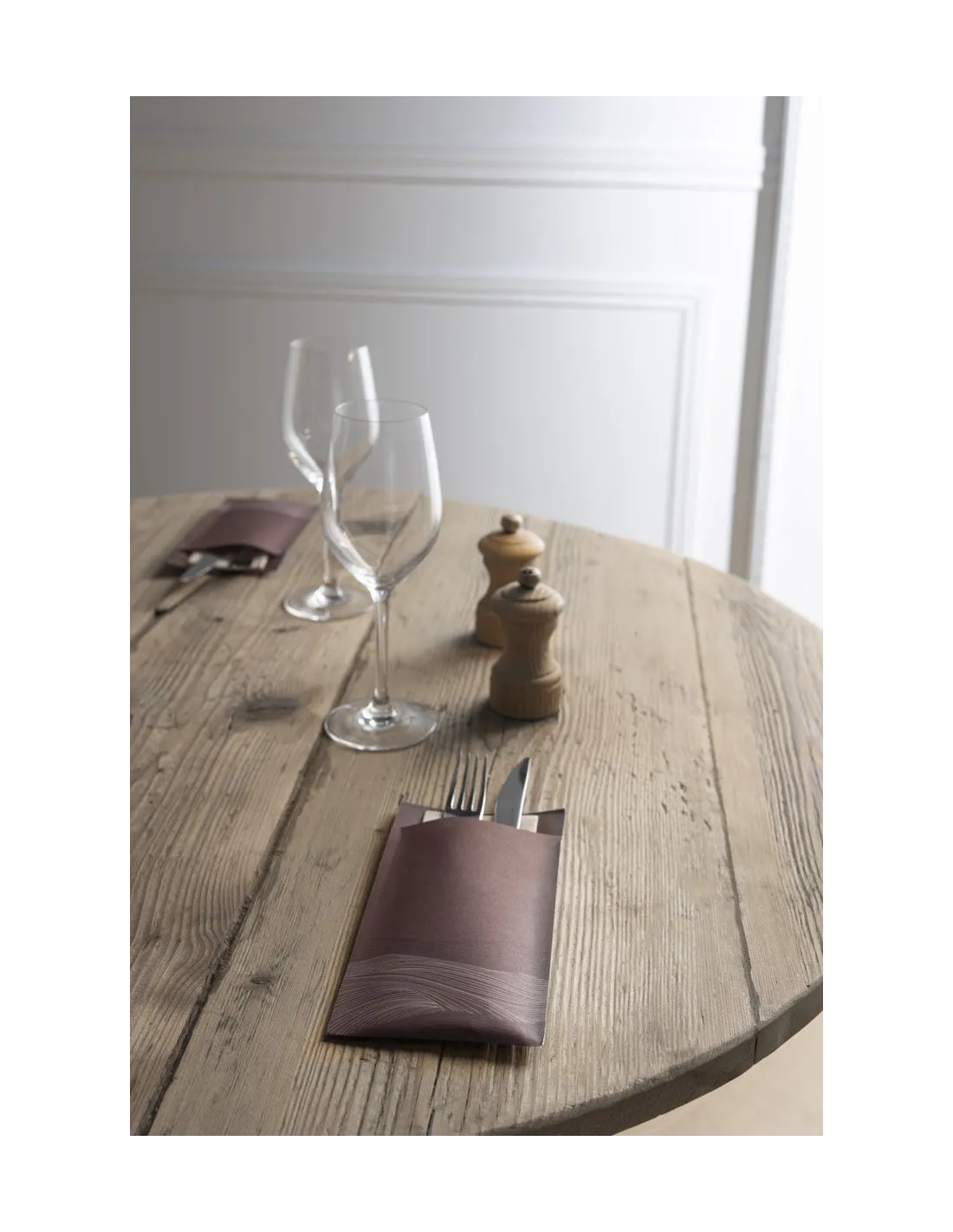 Bolsa de papel terracota de 20x10 cm que contiene una servilleta Doble Punto 100% de 39x39 cm, plegada en 8. Facilita el montaje de mesas, siendo funcional e higiénica. Presentada en caja...