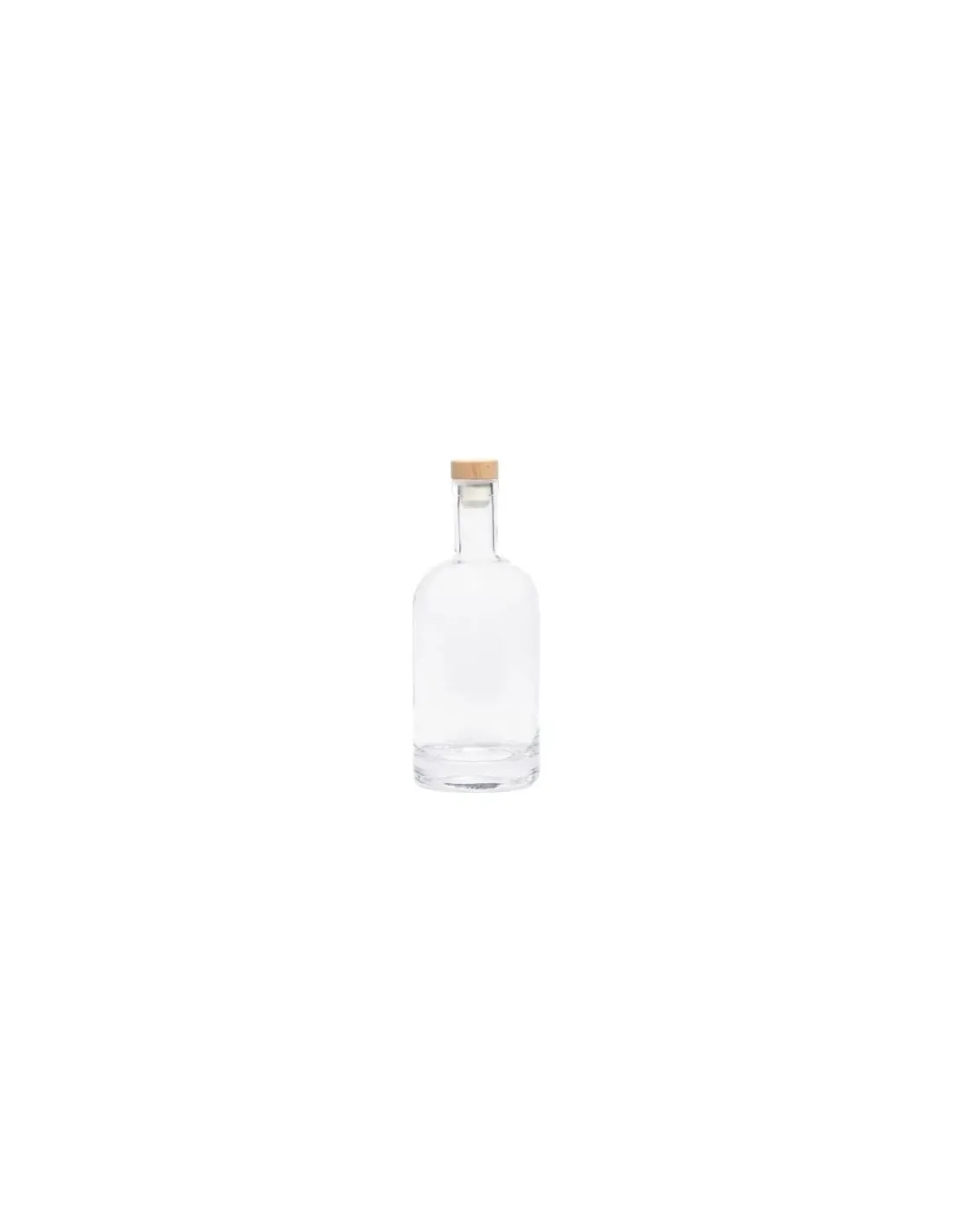 Pro.mundi ofrece la botella de vidrio transparente 75 cl de la gama Aqualis, que combina diseño moderno, funcionalidad y solidez. Con sus 23,5 cm de altura, un diámetro de 9,3 cm y un peso de 710 g, ofrece buen agarre y estabilidad. Se entrega con un tapón de madera y es apta para lavavajillas, adecuada para profesionales.