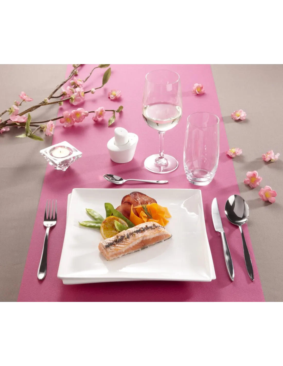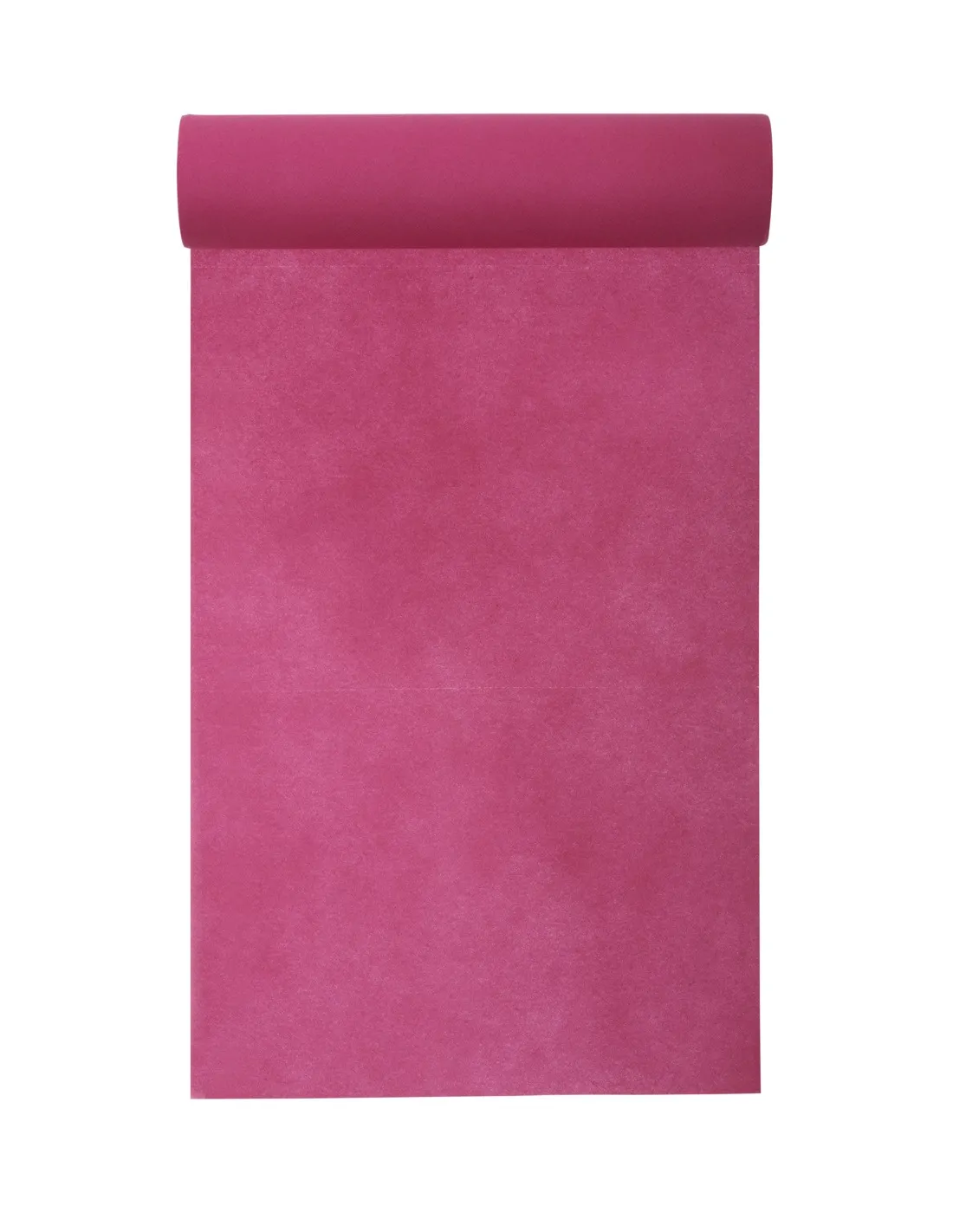Rollo camino frambuesa no tejido de 60 g/m², con medidas de 0,4x24 m. Facilita un montaje estético y cuenta con un color elegante que realza las mesas.