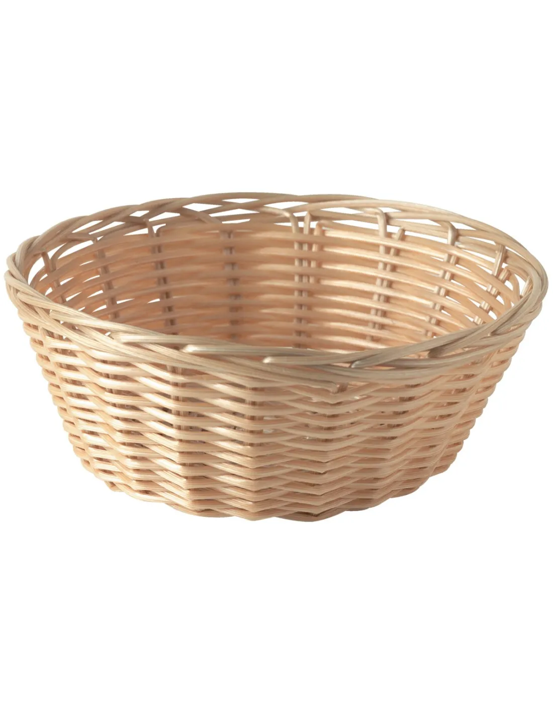 Pro.mundi ofrece una cesta redonda beige de polipropileno (Ø 21 cm, altura 6,5 cm) que combina diseño clásico y funcionalidad. Ligera, resistente, apilable y fácil de limpiar, es ideal para profesionales de la hostelería que buscan una presentación cuidada y duradera de panes y bollería, con un estilo atemporal y gran practicidad.
