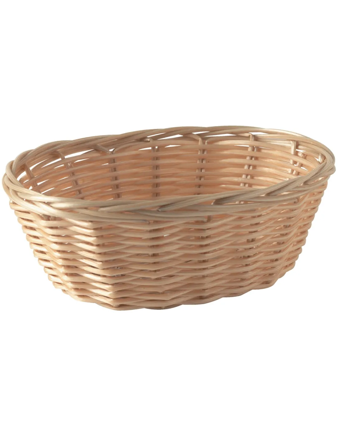 Cesta ovalada de polipropileno (PP) en color beige, con medidas de 23x15x6,5 cm, adecuada para diversos tipos de mesas.