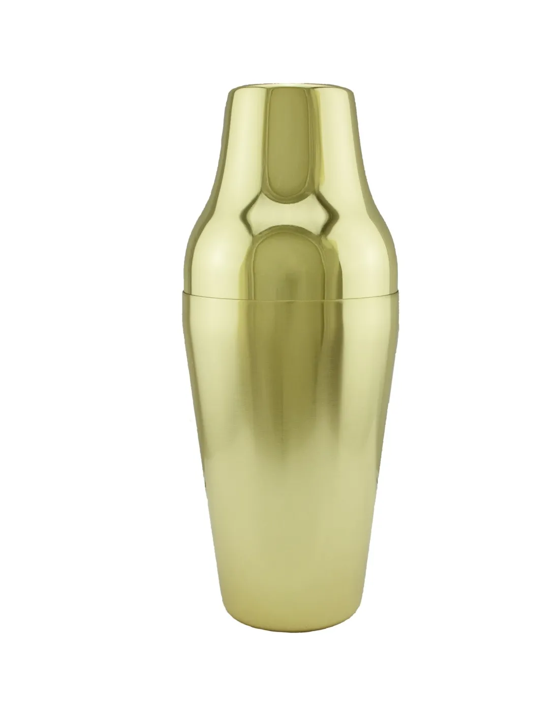 Coctelera de 50 cl, con un diámetro de 9 cm y una altura de 22 cm, en color oro.