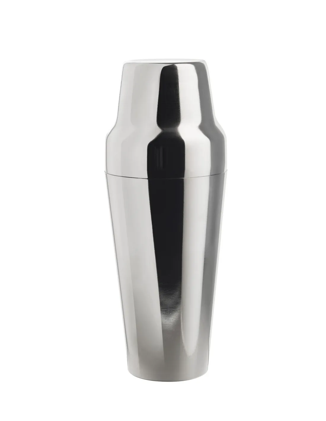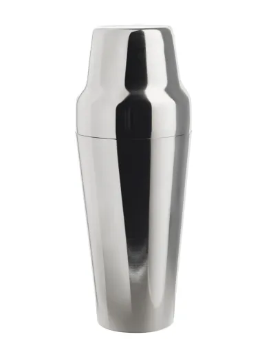 Coctelera de 10 cm de diámetro y 26,5 cm de altura, con capacidad de 90 cl. Fabricada en acero inoxidable, es hermética y diseñada para un uso intensivo.