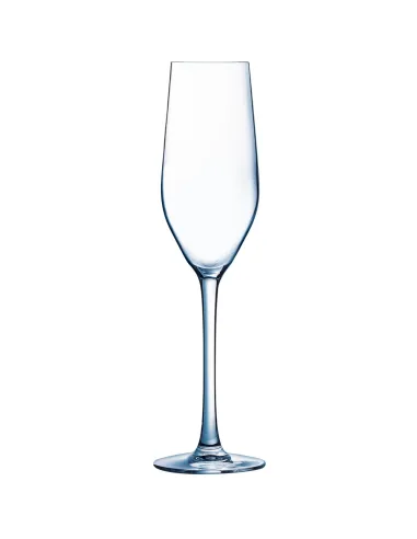 La copa flauta de vidrio de 16 cl está fabricada en Francia con material reciclado. Resistente a choques térmicos y mecánicos, su diseño moderno y borde fino la hacen adecuada para la restauración...
