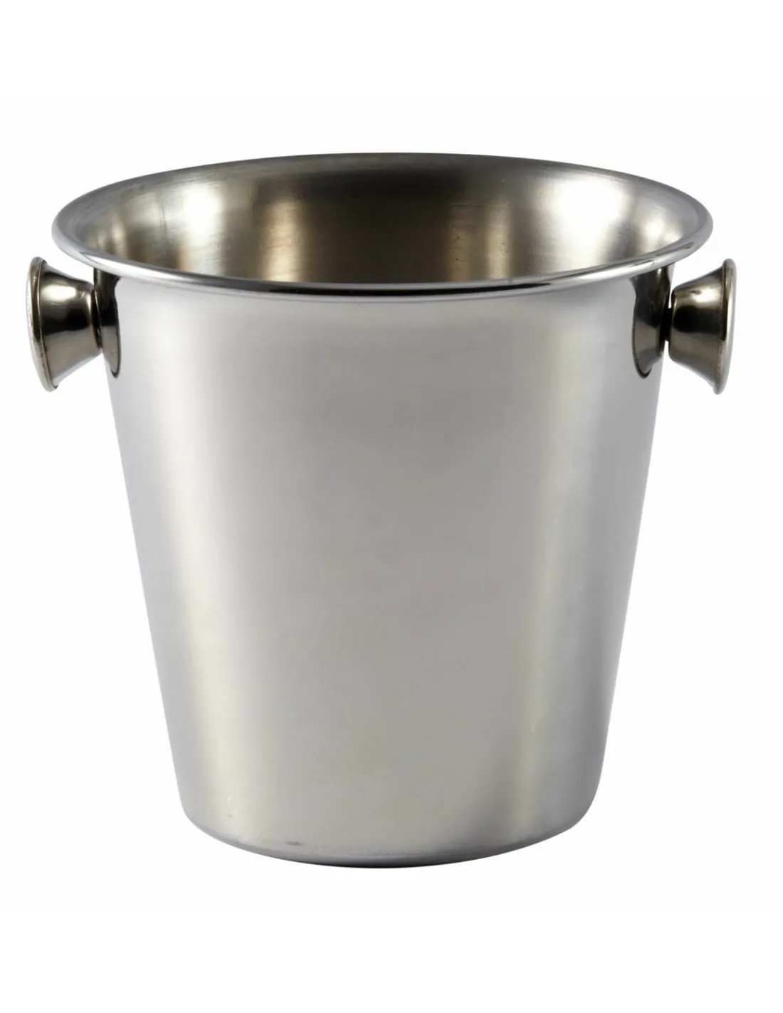 Pro.mundi ofrece una cubitera de acero inoxidable robusta y estética, con un diseño compacto (Ø 12,5 cm, altura 12 cm). Su exterior pulido espejo e interior satinado aseguran una buena conservación de los cubitos de hielo. Equipada con asas laterales para una manipulación fácil, es personalizable e ideal para los profesionales de la restauración.