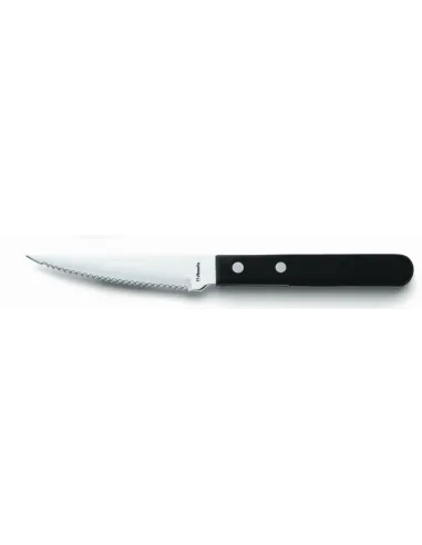 Cuchillo chuletero serrado de 21 cm, diseñado para profesionales de la restauración. Su mango de ABS negro y hoja dentada de acero inoxidable 13Cr garantizan resistencia a la corrosión y un corte...