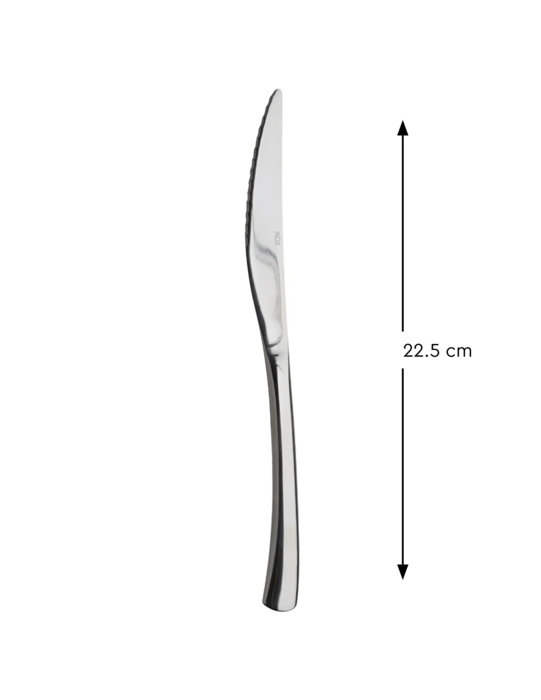 Cuchillo de mesa monobloque dentado de 22,5 cm, fabricado en acero inoxidable 13Cr, destaca por su durabilidad y resistencia a la corrosión. Su hoja de 11,5 cm y mango ancho monobloque garantizan...