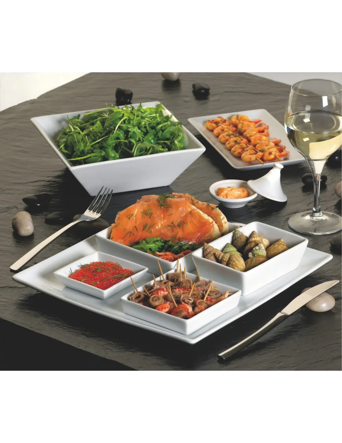 El cuenco Edina de porcelana blanca de 9 cm aúna elegancia y practicidad, ideal para la restauración. Resistente, apilable y fácil de limpiar, es apto para salsas, entrantes o postres, integrándose en diversos estilos de servicio gracias a su diseño sobrio y depurado.