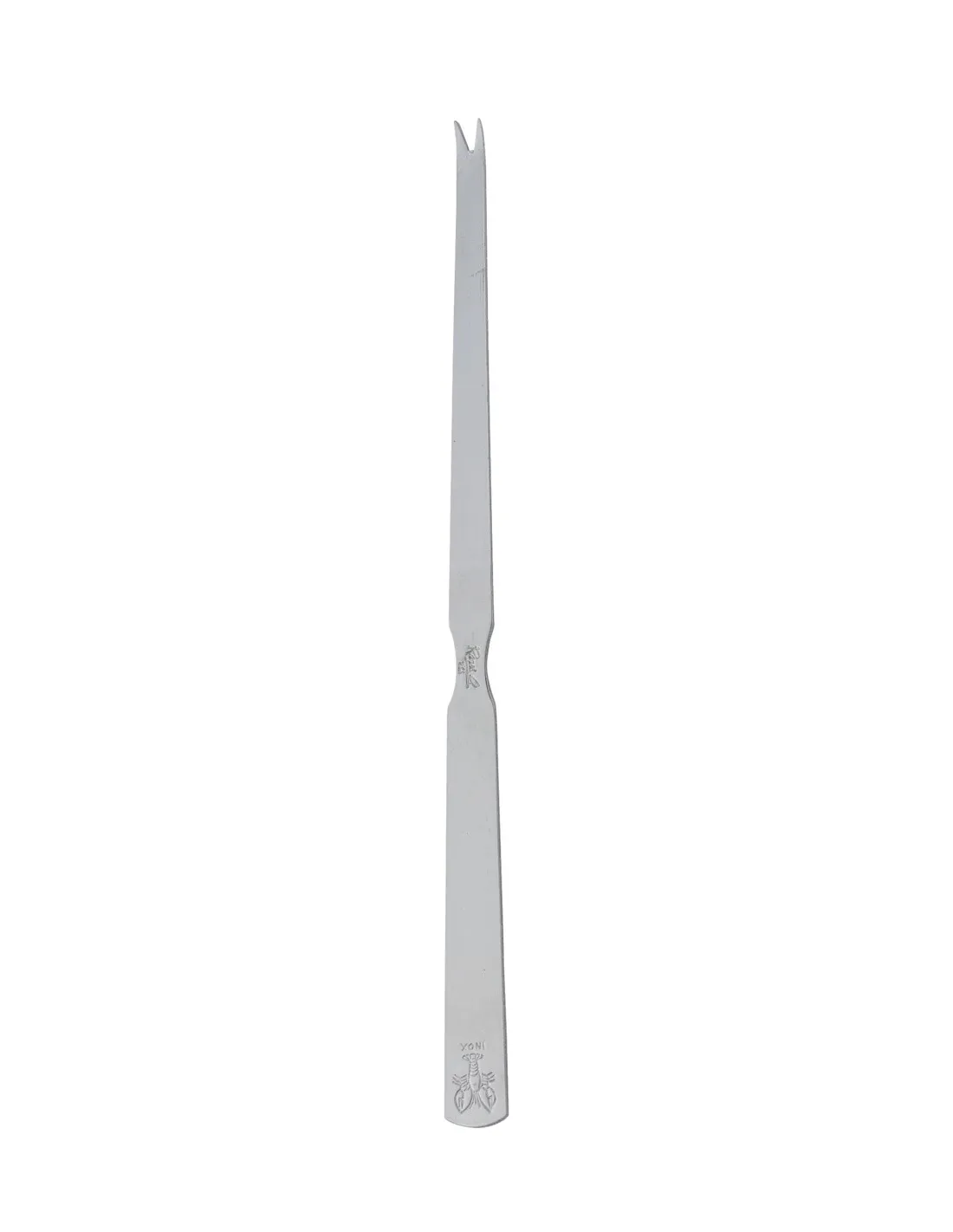 Pro.mundi propone una cureta para marisco en inox 18/0 de 19,8 cm, idónea para extraer fácilmente la carne de los crustáceos. Robusta, resistente a la corrosión y fácil de limpiar, es perfecta para los profesionales de la restauración. Su diseño sencillo y elegante se integra armoniosamente en las fuentes de marisco, garantizando un servicio práctico y cuidado.