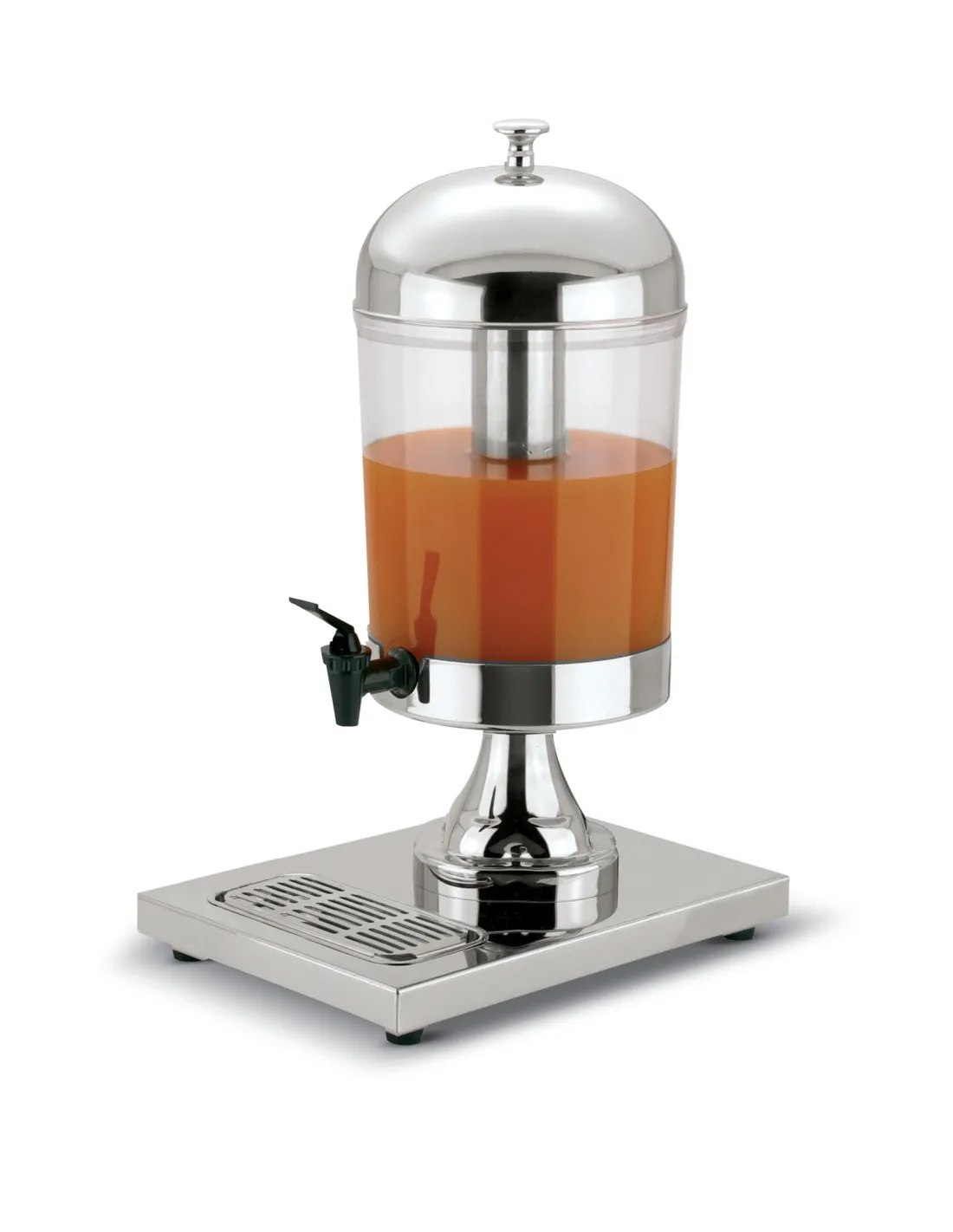 Dispensador de zumos de 8L, fabricado en acero inoxidable, con tubos refrigerantes desmontables para hielo picado, apto para lavavajillas y tapón antigoteo de plástico.