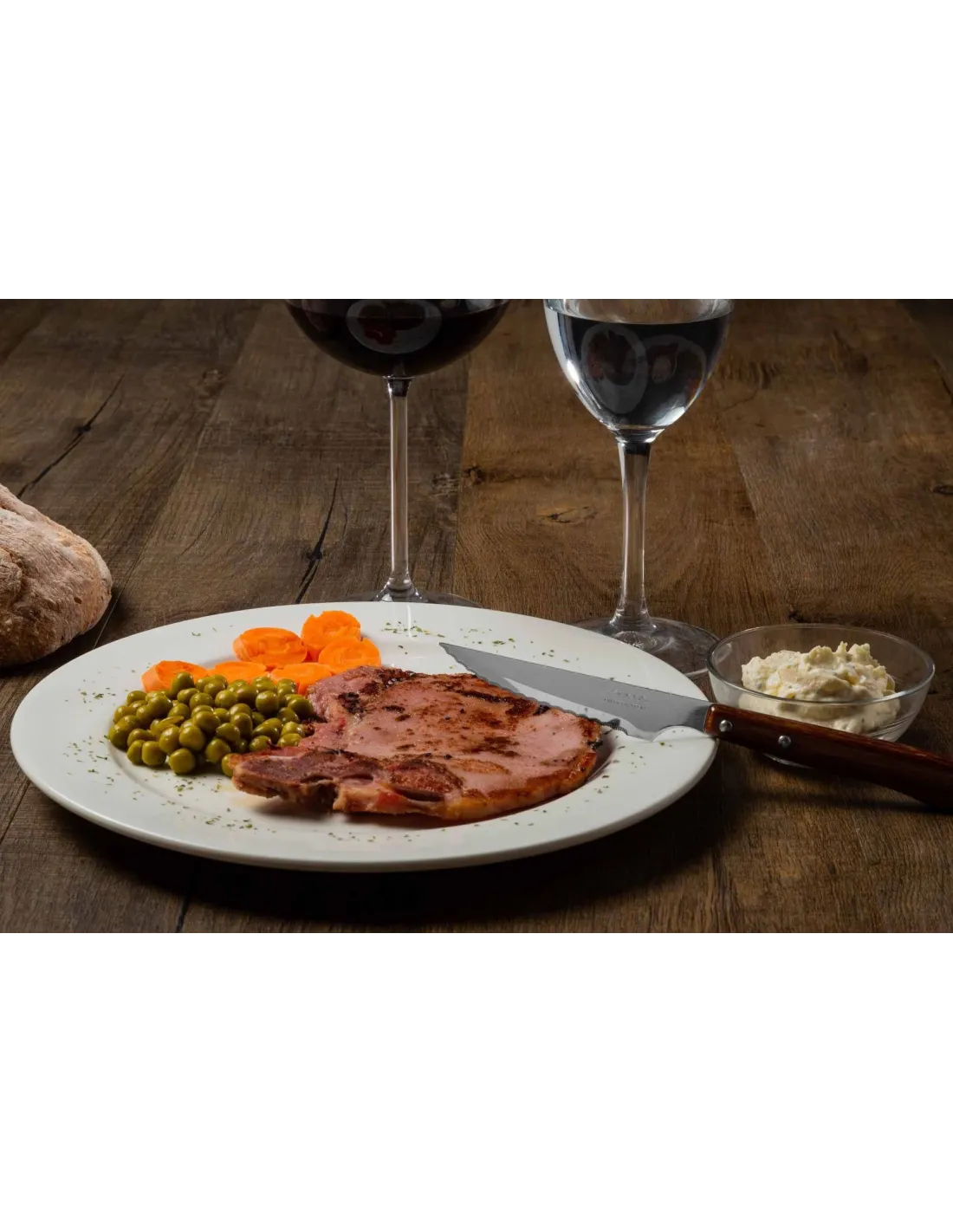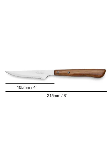 This choulery knife 21.5cm of Arcos, with nitrum stainless steel sheet, offers exceptional resistance and a durable edge for a precise cutting of meat. Its natural wood handle brings a touch of warmth and rustic elegance to the table, in addition to a comfortable and traditional grip. Ideal for intensive use in restaurants and grills that seek to combine professional functionality with a classic and cozy aesthetics. The durability of Nitrum steel ensures a prolonged performance over time.