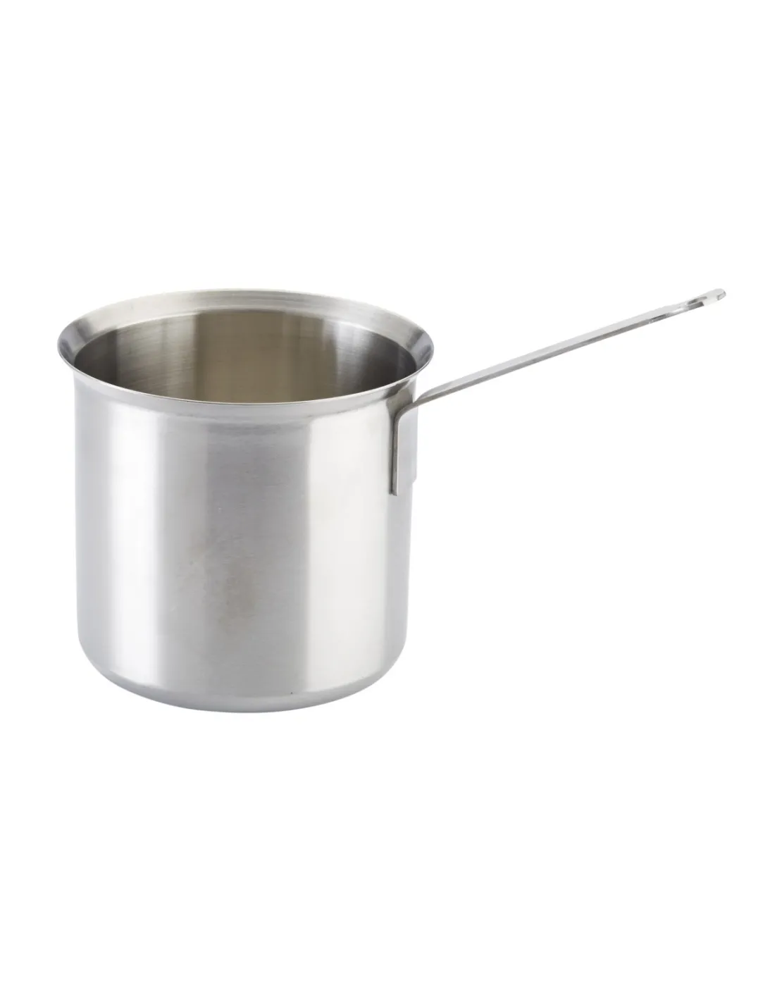 Stainless steel container, tall and narrow, designed to keep hot sauces in a bain-marie. Measurements: Ø 14 cm, capacity of 2.5 L.