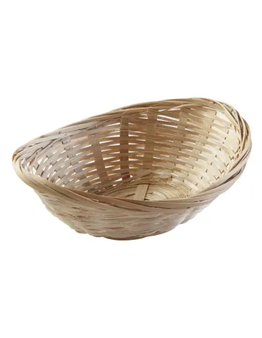 Oval bamboo basket measuring 19.5x15x6 cm, lightweight and moisture-resistant. Stackable, suitable for presenting bread, fruit, or pastries in professional settings. Its discreet design blends in...
