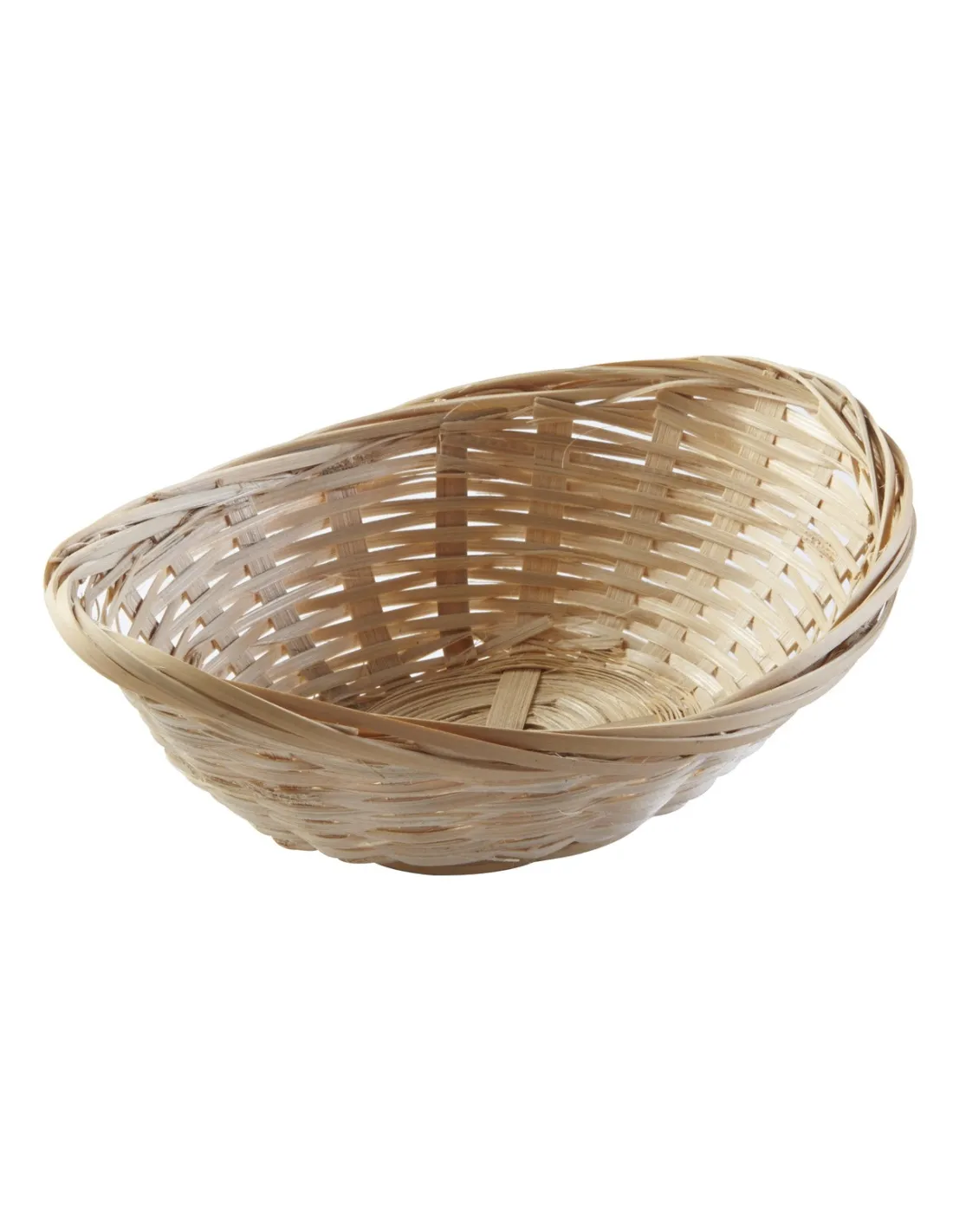 Pro.mundi offers an oval bamboo basket measuring 19.5x15x6 cm, which combines natural aesthetics and sturdiness. Lightweight, moisture-resistant, and stackable, it is ideal for presenting bread, fruits, or pastries in professional establishments. Its discreet design fits into all buffet or table styles.