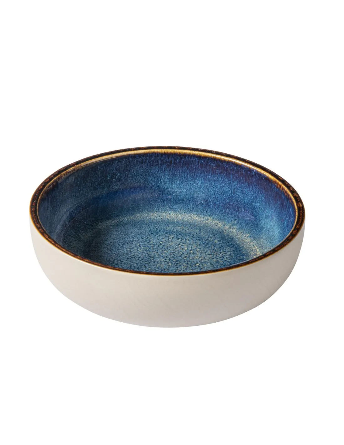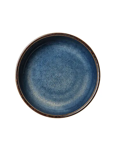 The round dark blue porcelain bowl Ø 16 cm Seablue Accolade is an elegant and practical container, resistant to daily use, microwave and dishwasher safe. Its design combines a matte clay-colored exterior and a deep blue interior, evoking nature. Its stackable format makes storage easy and is suitable for various culinary preparations.