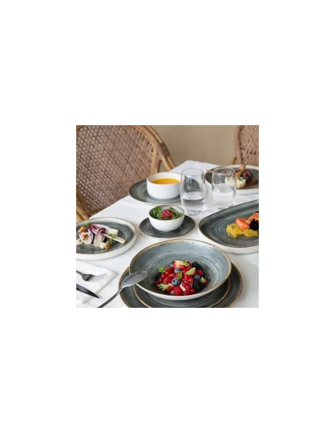 Bowls Round beige porcelain bowl Ø 16 cm Savanna Accolade Accolade €4.24 / u. €5.13 SRP €16.96 4 u. €20.52 SRP The round beige porcelain bowl with a diameter of 16 cm features a design inspired by nature with shades of beige and blue. Heat resistant, it is microwave and dishwasher safe, offering elegance and functionality for the restaurant sector. Bajo pedido Ref: 322673
