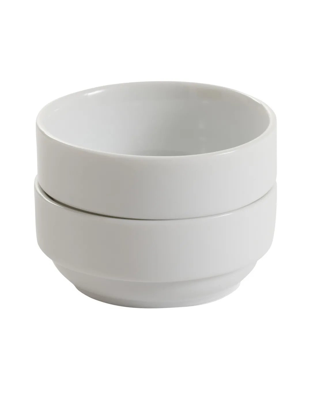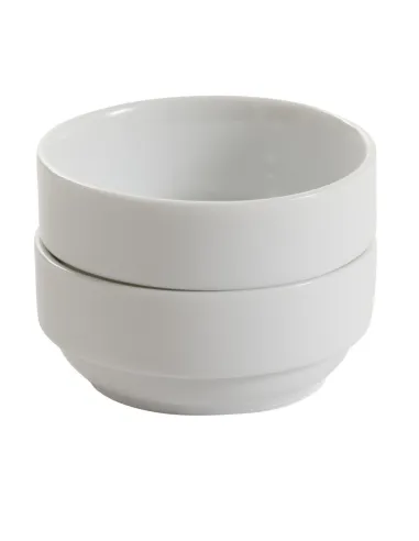 The 8 cm diameter white round porcelain bowl, designed for professional use in the hospitality industry, is practical, stackable, and resistant to thermal and mechanical shocks. Easy to clean, it is ideal for serving appetizers or desserts, while creating an elegant and functional atmosphere in any HORECA establishment or collective setting.