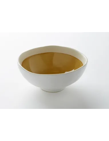 The yellow round glazed stoneware bowl Ø 12.5 cm from the Winter range Pro.mundi is designed to combine durability, aesthetics, and functionality. Its crackled glaze and rough-edged finish give it an artisanal and refined look. Ideal for the hospitality industry, it is stackable, resistant to thermal shocks, and suitable for various culinary presentations.