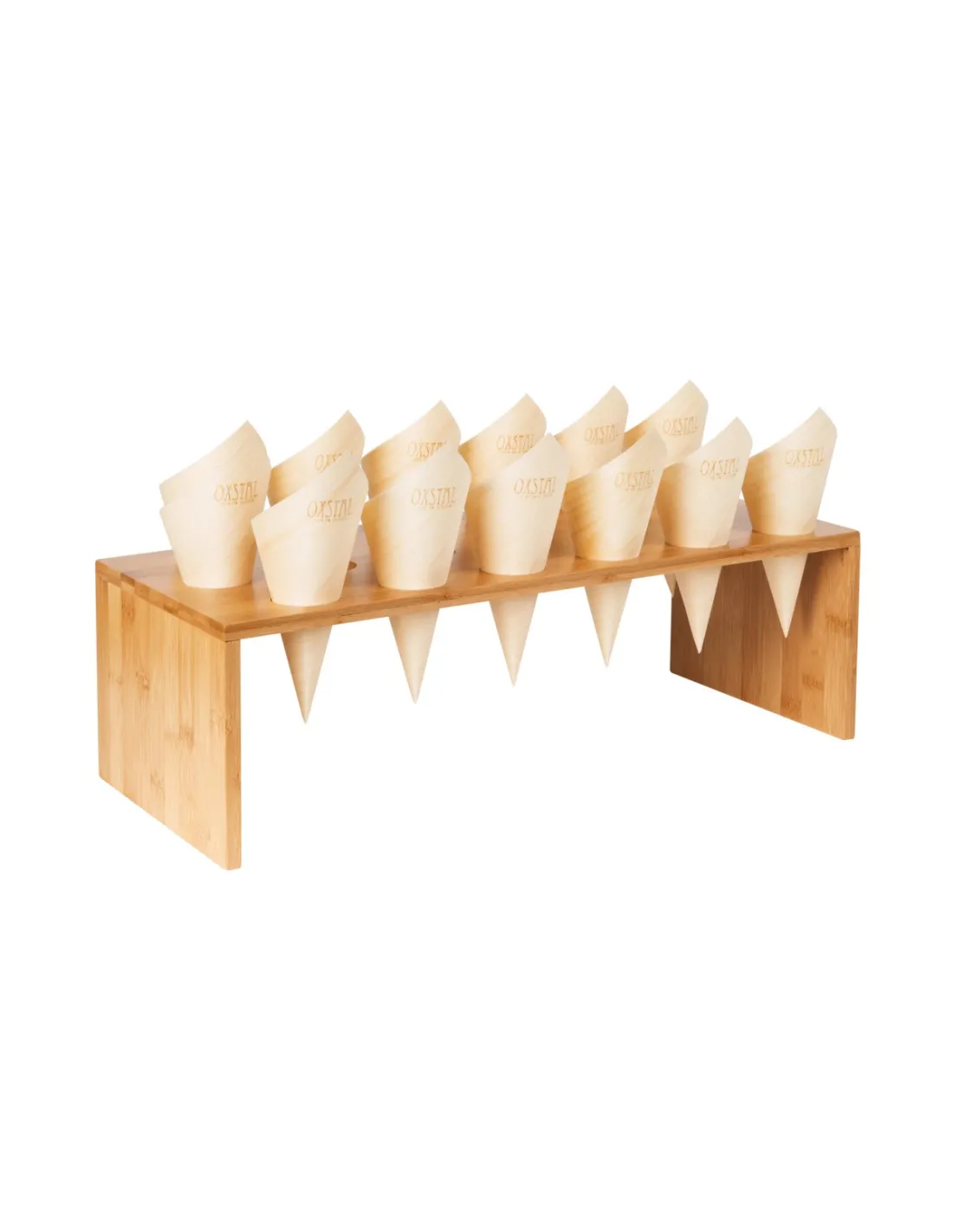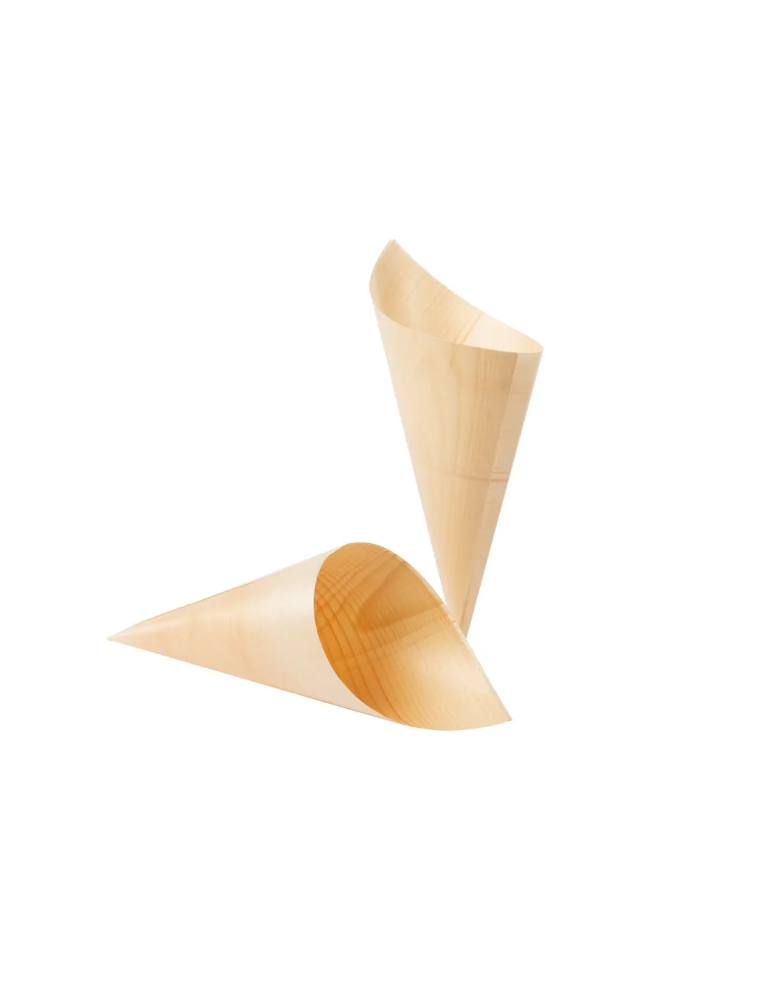 Wooden cones measuring 12 cm in height and 6 cm in diameter are ideal for buffet and event presentations. Made of natural pine for single use, they are compatible with bamboo displays, optimizing...