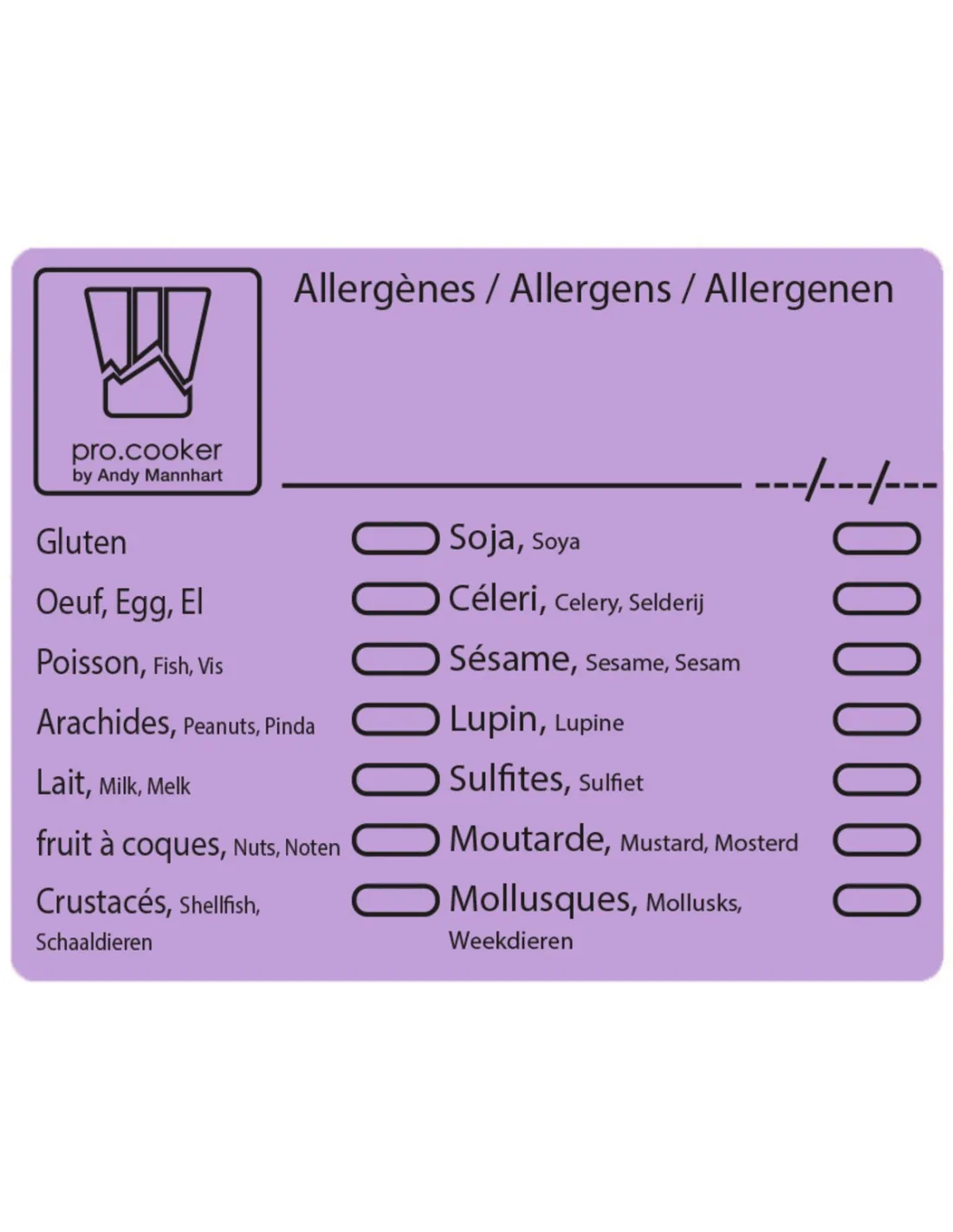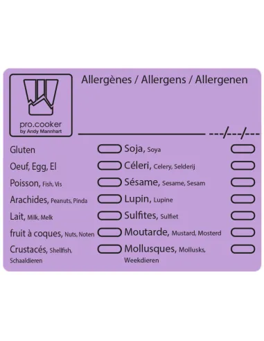 500 labels dispenser box of 7.1x5.6 cm paper allergen labels Non-repositionable Peelable Pro.cooker (500 units)