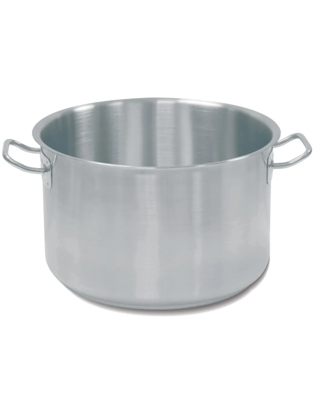 Stainless steel uncoated cooking pot without lid, with a diameter of 28 cm and a height of 18.5 cm. Capacity of 11 liters. Tri-layer diffuser base and a heat-resistant stainless steel tube handle....