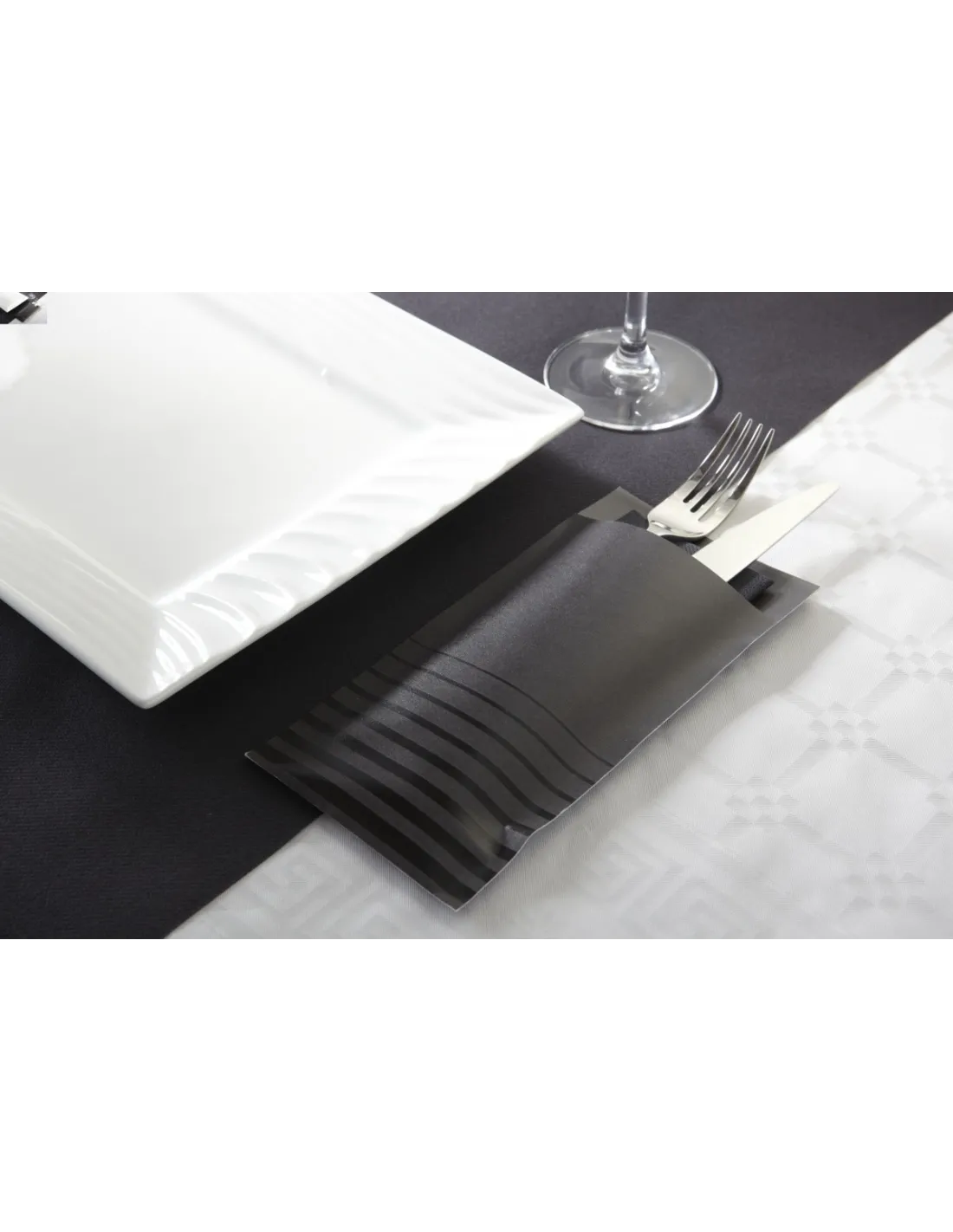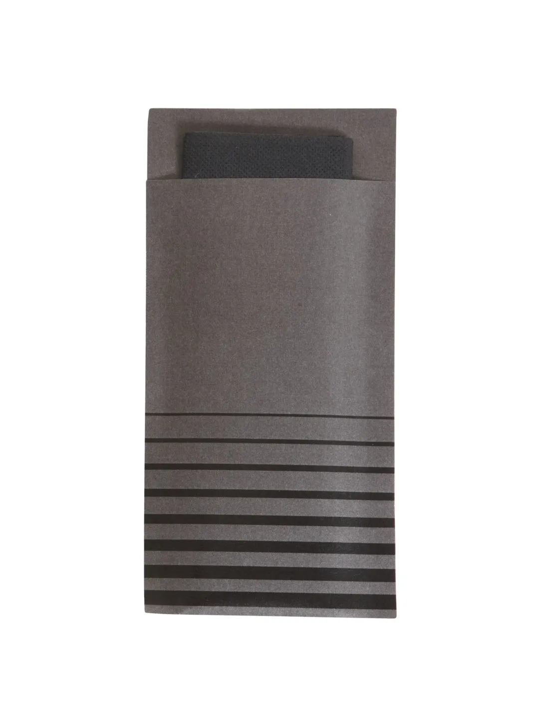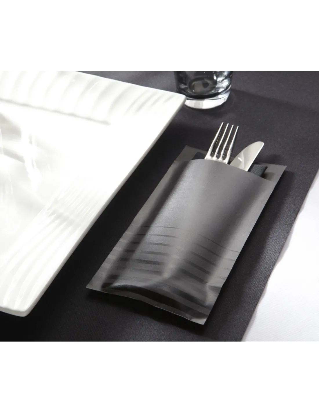 The paper sleeve with an embossed cellulose napkin is a hygienic solution for quickly setting a table. It protects the utensils and provides an interesting alternative to the traditional napkin. Prepare the sleeves in advance by inserting the utensils and place them on the tables when needed. It contains a 2-ply cellulose napkin measuring 23 x 39 cm.