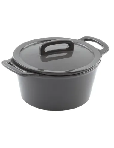 Round gray enameled stoneware cocotte, with a diameter of 10 cm, resistant up to 200°C. Compatible with microwaves, ovens, and dishwashers, it features a simple and practical design. Its...