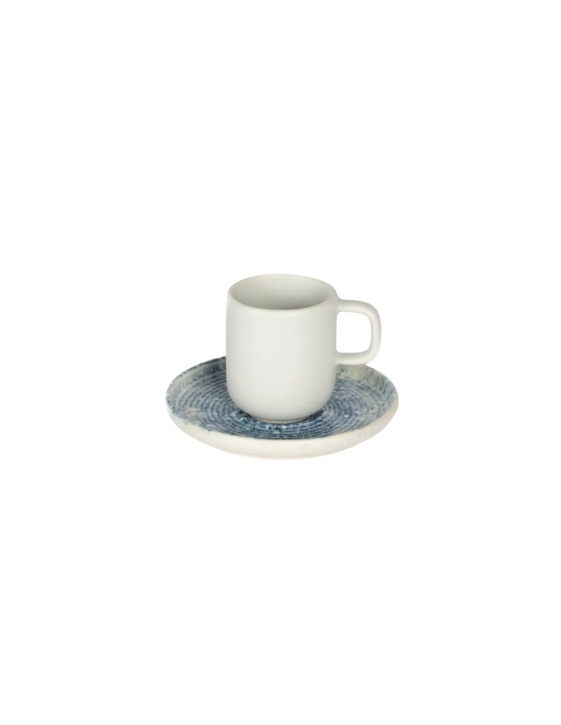 The blue round glazed stoneware espresso cup has a capacity of 9 cl and a diameter of 5.5 cm. Its design evokes icy landscapes with shades of blue and white. Made of glazed stoneware, it is...