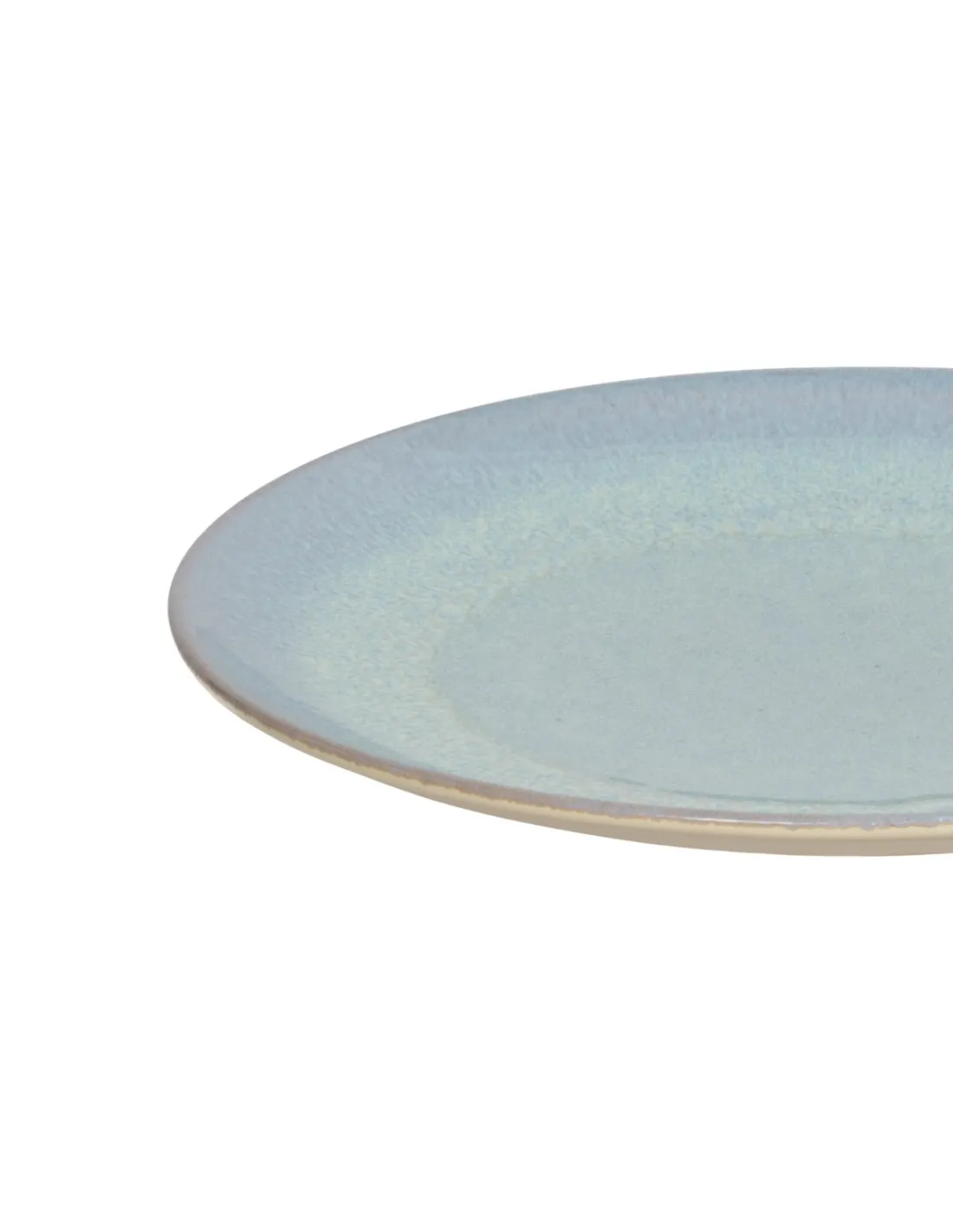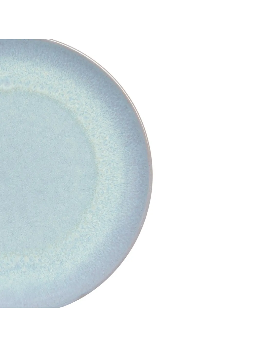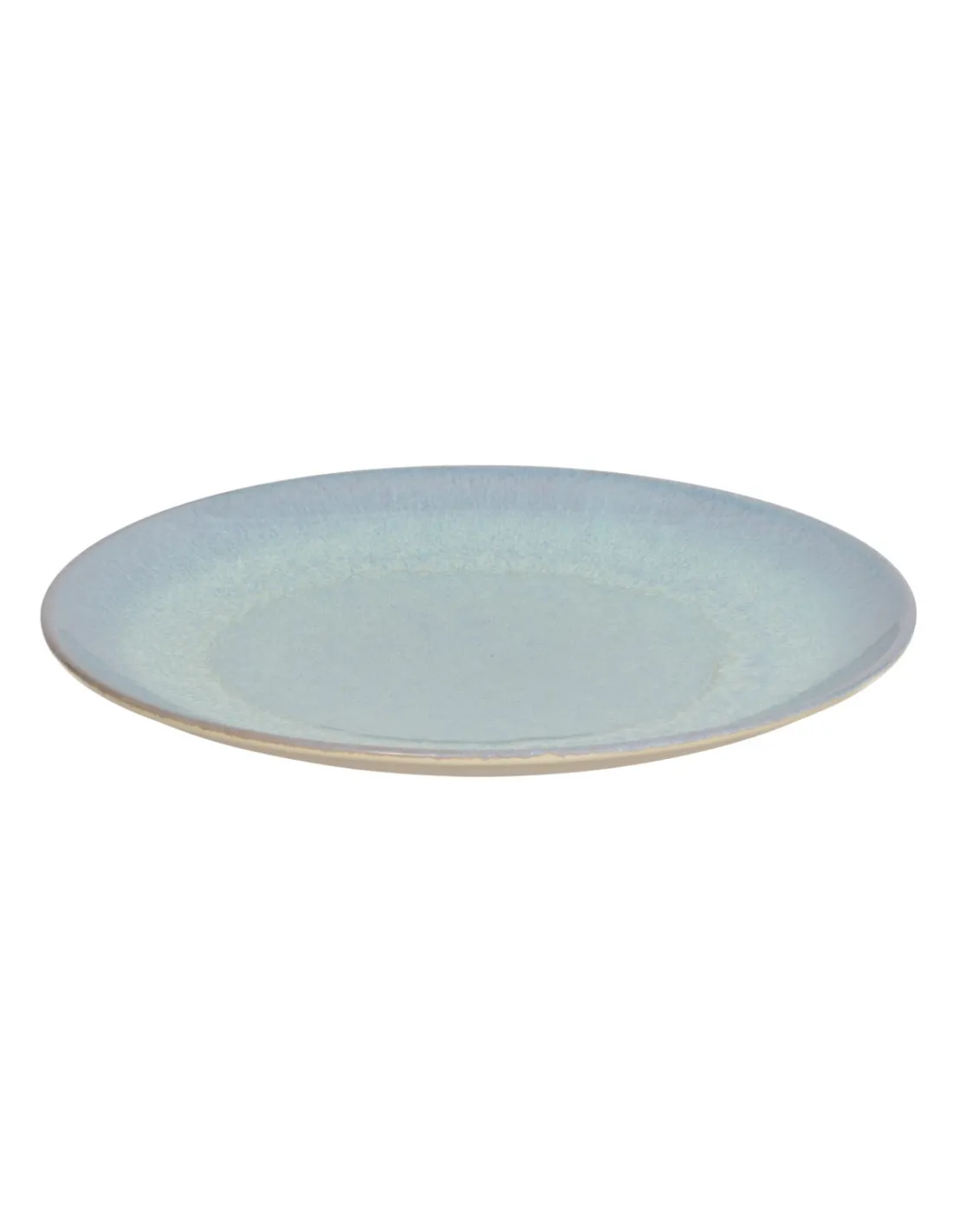 Round flat plate made of fine porcelain, Ø 27 cm, with a matte clay exterior and a bright iridescent blue interior. Heat-resistant, microwave and dishwasher safe, it offers durability and an...