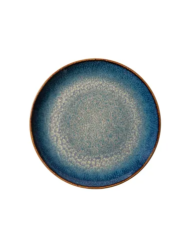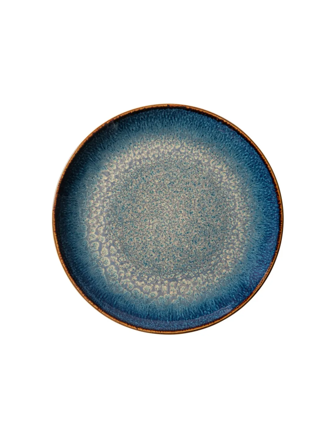 Round flat porcelain plate, 21 cm in diameter, suitable for microwave and dishwasher. It features an elegant design with a matte texture on the exterior and a deep blue glaze on the interior,...