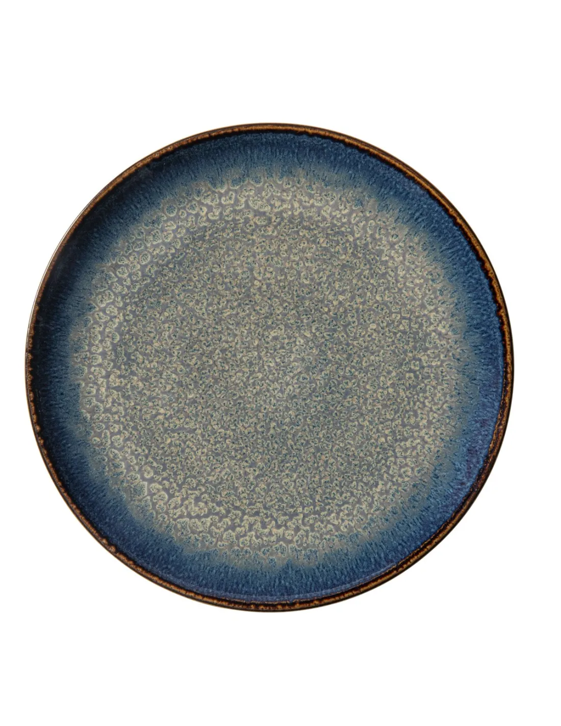 Flat round porcelain plate in dark blue, with a diameter of 27 cm. Category: tableware. Material: porcelain. Use: table service.