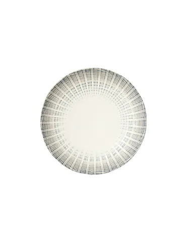 The round flat porcelain plate with a Ø of 27 cm Granada Accolade combines elegance and practicality, with a modern graphic design in dark blue and touches of beige. Resistant, stackable, dishwasher and microwave safe, it is ideal for professional catering, offering style and functionality to enhance every culinary presentation.