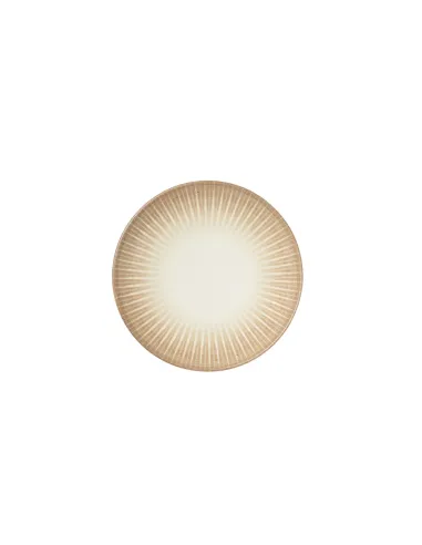 Round flat porcelain plate with a diameter of 21 cm, featuring brown relief decoration reminiscent of a palm tree. Combines aesthetics and sturdiness, making cleaning easier and adapting to the...