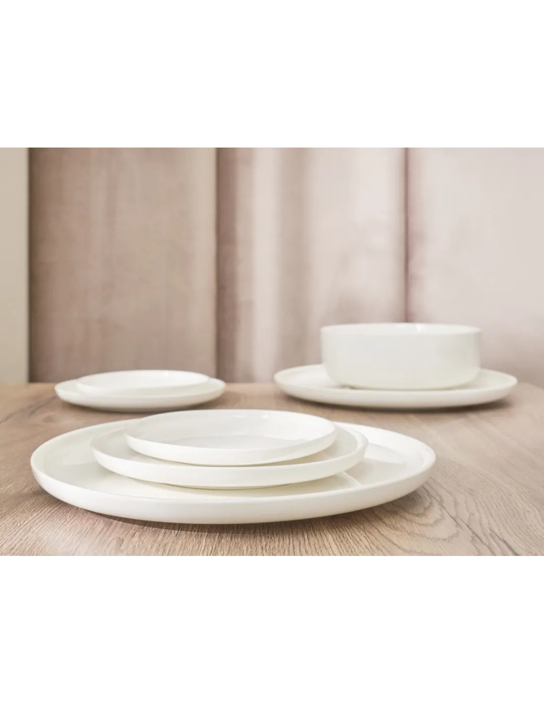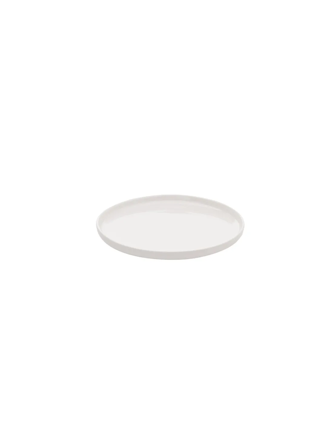Round flat plate made of reinforced porcelain, with a diameter of 15 cm. White color, designed for daily use and impact-resistant.