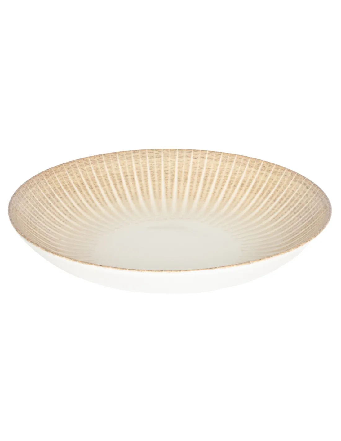 The round deep porcelain plate with a Ø of 26 cm Palma stands out for its nature-inspired design, with a shiny glaze and a brown relief decoration that evokes the veins of a palm tree. Made of...