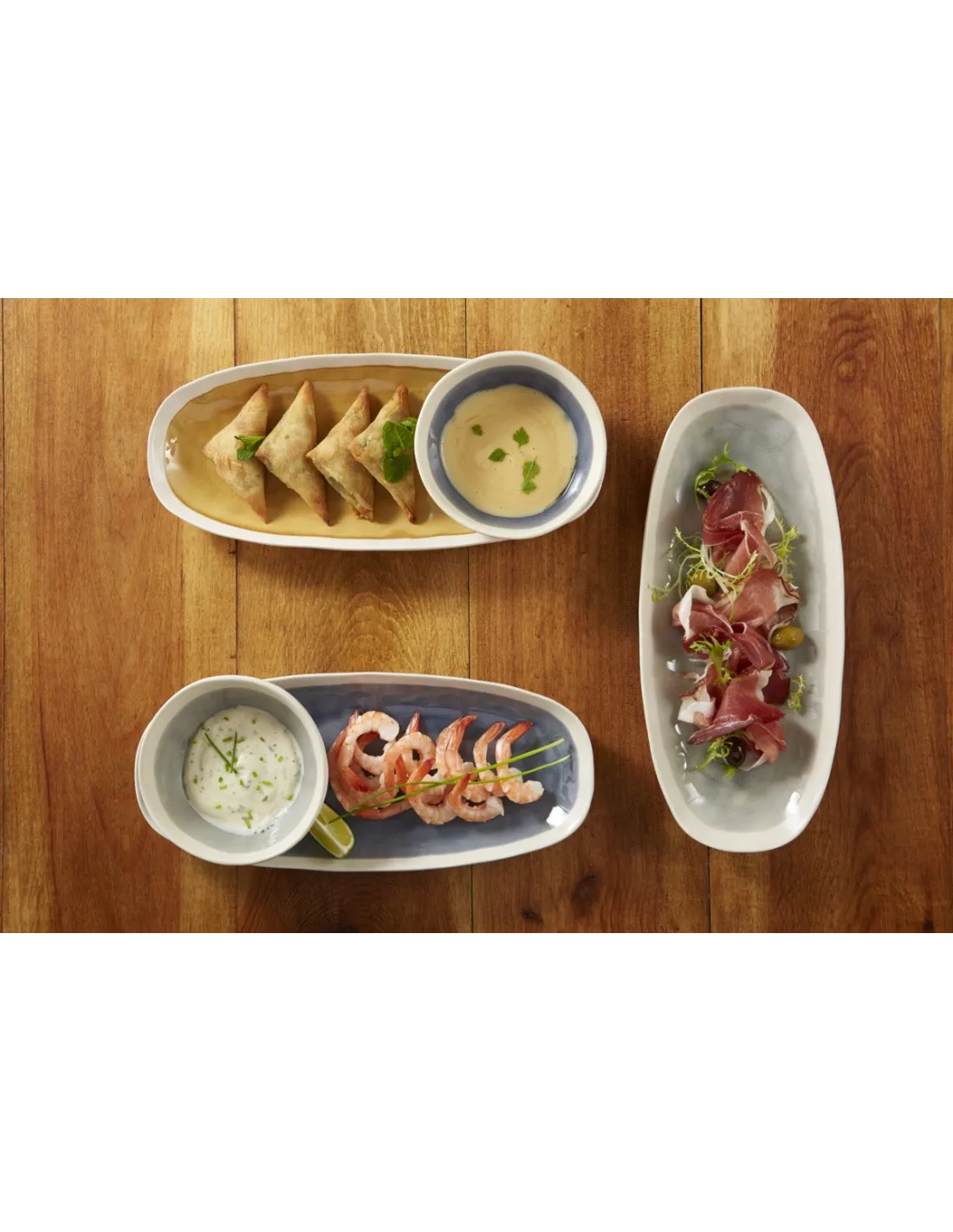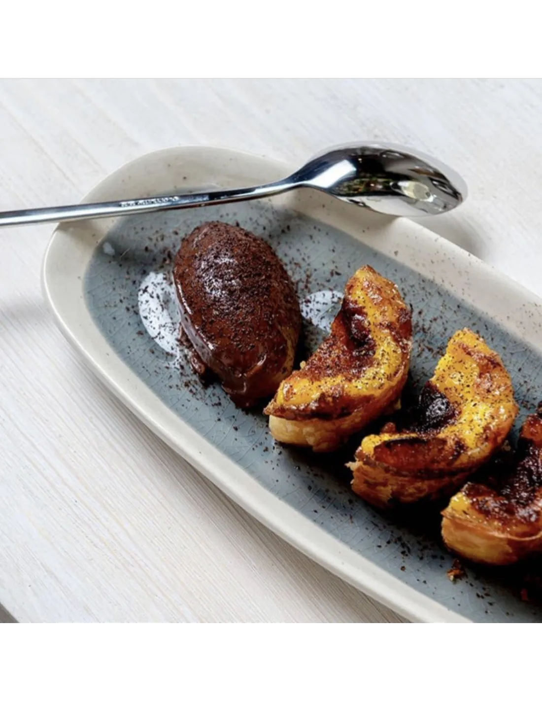 The Winter 25 cm glazed stoneware blue oval dish Pro.mundi fits perfectly into the artisanal and natural aesthetic of the Winter range. It has a rough appearance with an irregular shape but a refined finish thanks to the crackled color glaze. Winter is a range that aligns with current trends. The edges are matte white in contrast to the transparency of the cavity in yellow, blue, or gray. Think about the visual impact these shades can bring to your culinary presentations, enhancing the dishes with a palette of intense colors. Designed for professionals, the dish is made of glazed stoneware, a material appreciated for its robustness and its ability to withstand thermal shocks. This ensures great product durability, essential in a professional environment where frequent handling of tableware is common. Additionally, glazed stoneware is known for retaining heat, thus favoring the serving of dishes at the ideal temperature. Practicality is not overlooked, as this piece is stackable, an undeniable advantage for optimized storage in restaurant kitchens. By optimizing storage space, it allows you to keep the kitchen organized, contributing to greater operational efficiency. With dimensions designed for professional use – length of 25 cm, width of 11.50 cm, and height of 2.50 cm – the Winter 25 cm glazed stoneware blue oval dish Pro.mundi offers a sufficient surface to showcase your culinary creations, integrating harmoniously into the presentation of your tabletop service. By choosing this piece from the Winter range, you bring a warm and memorable aesthetic to your establishment. It adds character to your table, combining robustness and elegance, and creates an environment where conviviality and the generosity of your kitchen are highlighted.