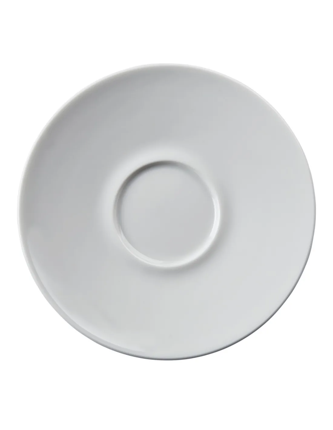 The round white porcelain saucer for cappuccino/tea has a diameter of 15 cm. Its timeless design and functionality are complemented by its durability and easy cleaning. This model allows for an...