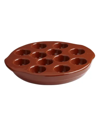 Round brown glazed stoneware plate for snails Ø 20 cm Pro.mundi