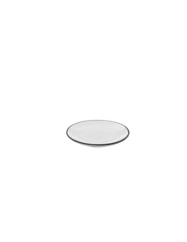 Round espresso saucer, made of glazed stoneware, with a diameter of 11 cm. It belongs to the kitchenware category and is suitable for use in cafes and restaurants.