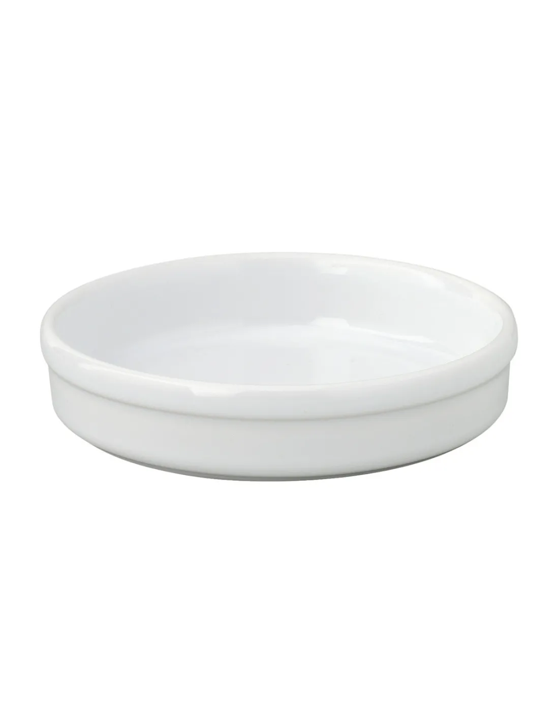 Catalan round white porcelain plate with a diameter of 14 cm, stackable and resistant. Designed for intensive use in professional catering, combining practicality and durability.