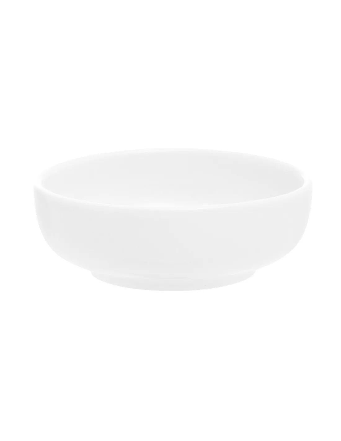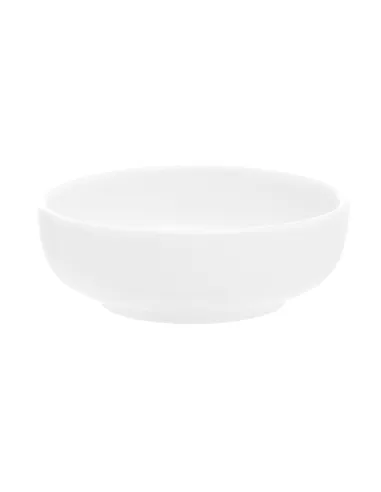 Round white porcelain tasting plate with a diameter of 8 cm. Designed to elegantly present appetizers and small portions.