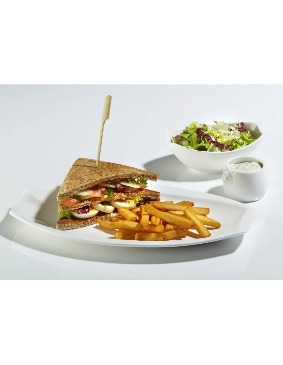 The 37x21 cm white oval flat porcelain plate from the Matcha Pro.mundi range embodies elegance and functionality. Resistant to thermal shocks, easy to clean, stackable for optimal storage, it is ideal for professional hospitality. Perfect for stylishly presenting different dishes, ensuring durability and practicality.