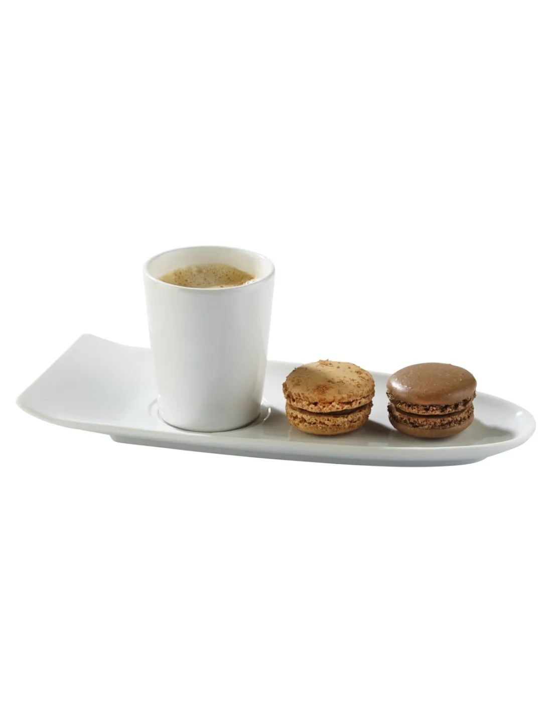 Oval dish measuring 23 cm, made of white porcelain, designed for gourmet coffee. It belongs to the tableware category and offers durability and elegance.