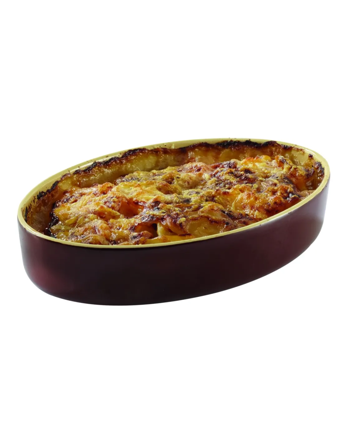 The Oval brown glazed stoneware sabot font 21x14 cm Pro.mundi offers a functional and aesthetic solution for the hotel industry, with a glazed stoneware finish that ensures heat retention, durability, and easy cleaning. Designed for professional use, it combines rusticity and elegance, ideal for serving and sharing traditional dishes in a pleasant environment.